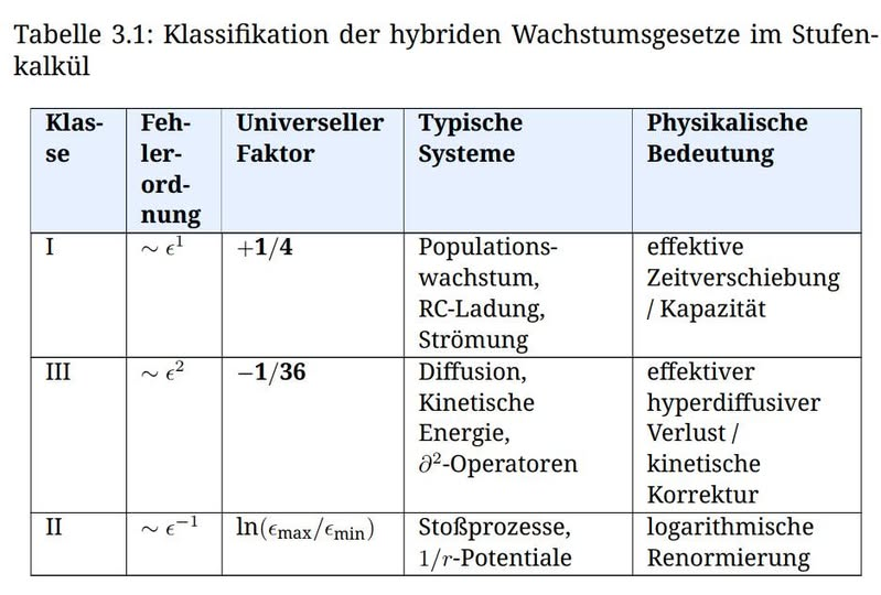 Das Framework liefert einen neuen Ansatz zur Quantifizierung des systematischen Bias, der bei der Diskretisierung von Differentialgleichungen entsteht. Ich konnte zeigen, dass dieser Bias zu einer strukturellen Korrektur der ursprünglichen Naturgesetze führt, den hybriden Wachstumsgesetzen. Die Korrekturen folgen universellen, rationalen Konstanten, die nur von der Fehlerordnung der Diskretisierung abhängen: