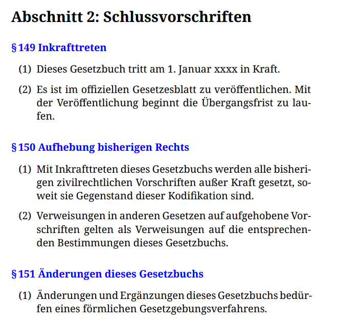 Für dieses vollständige wissenschaftliche Werk reichen nur 151 Paragrafen aus, vgl. Bürgerliches Gesetzbuch: 2385 Paragrafen.